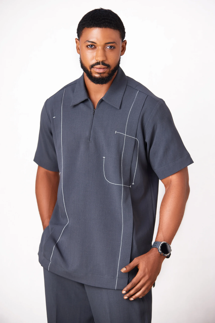 Two-piece Omu Kembe Set in premium Funtua cotton with bespoke batik print, lace-up V-neck top and rounded maxi-crotch baggy pants with ankle detailing.